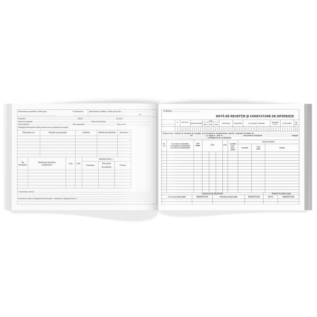 Nota de receptie si constatare de diferente (NIR) fara TVA este disponibila in carnete A4 a cate 100 de file, tiparite pe hartie offset super white 60 g, coperta alba fata-spate, legate prin capsare.