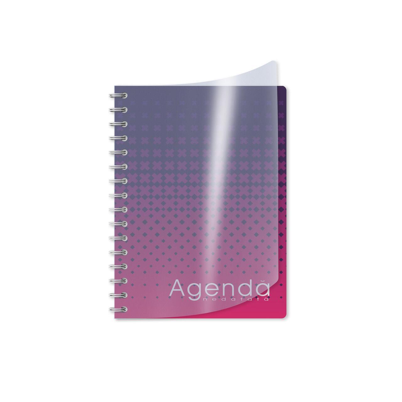 Design premium, cu copertă frontală și posterioară din carton de 300 g, prevăzută cu imprimare policromie vibrantă, și protecție suplimentară din supracopertă PriPlak transparentă, care păstrează un aspect rafinat. Primele 8 pagini conțin informații utile și un planificator săptămânal pentru o organizare eficientă.
