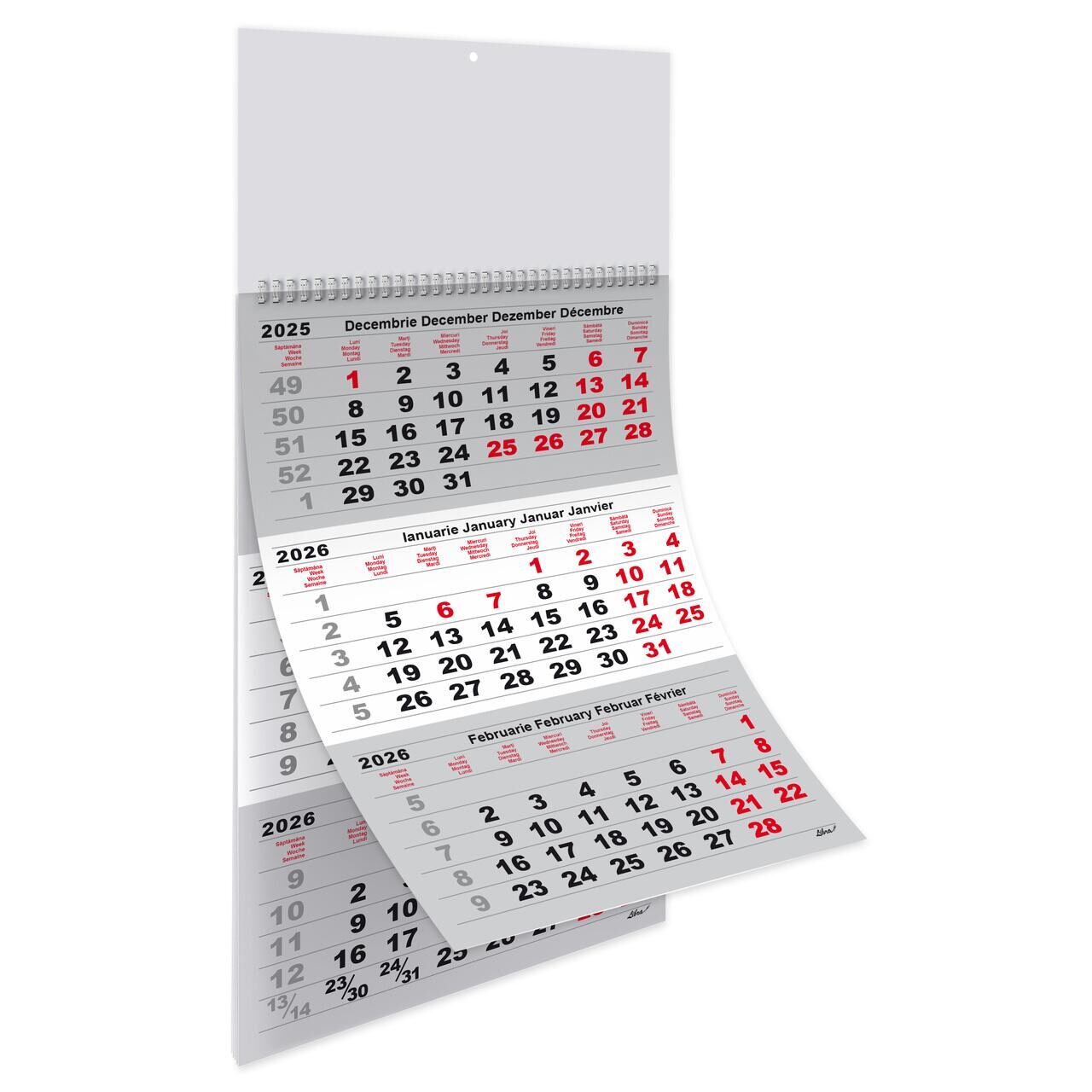 45 + 5 GRATIS Calendar triptic A3 2026 12file hartie lucioasa, gri si rosu