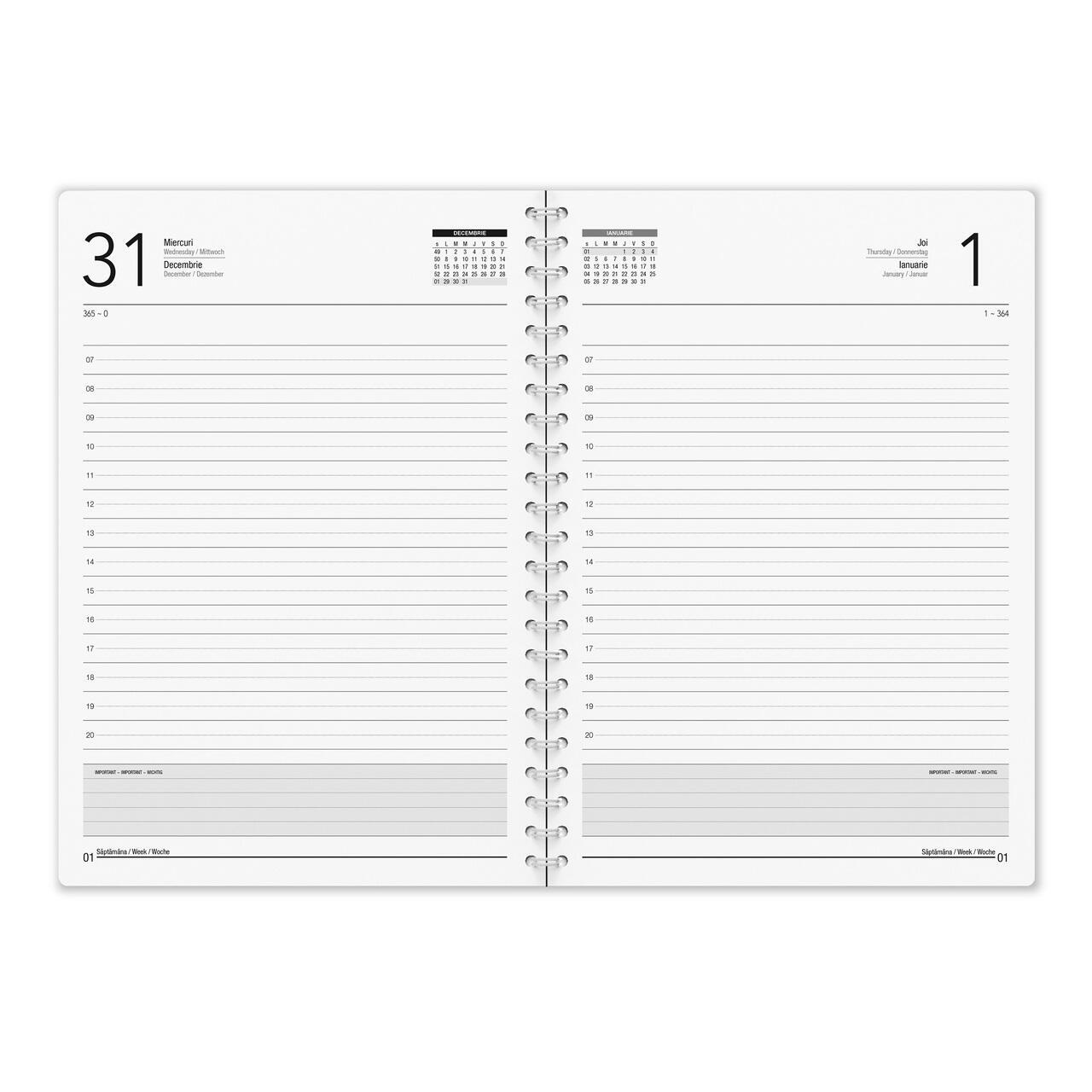 Legarea cu spirala metalică dublă permite deschiderea completă și o utilizare ușoară, fiind soluția ideală pentru gestionarea eficientă a timpului, într-un format profesional și atrăgător.
