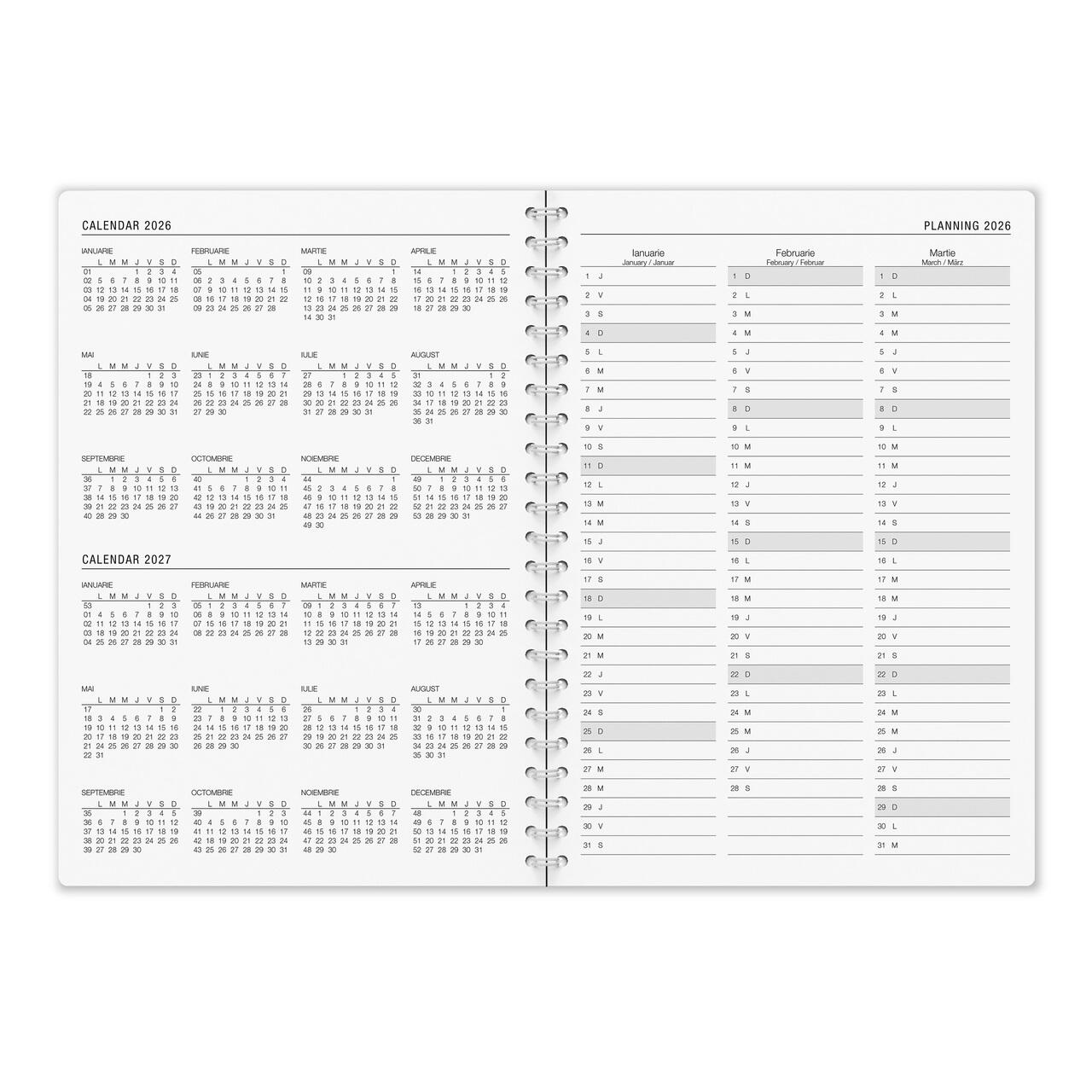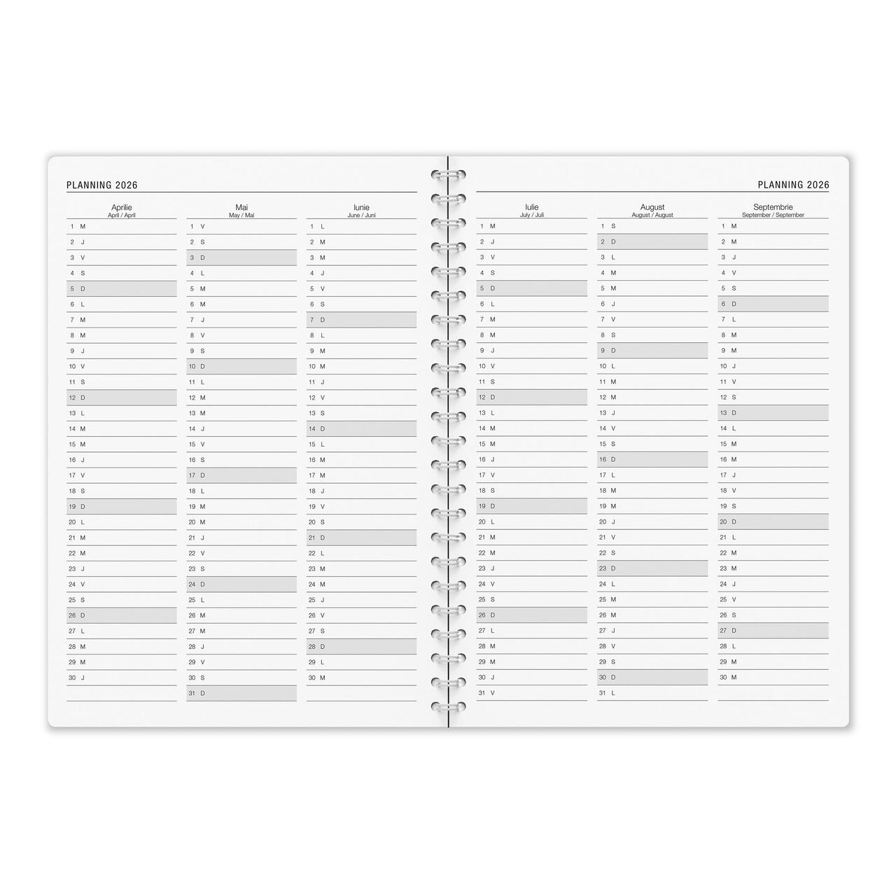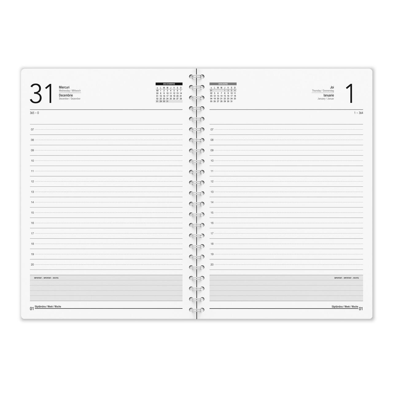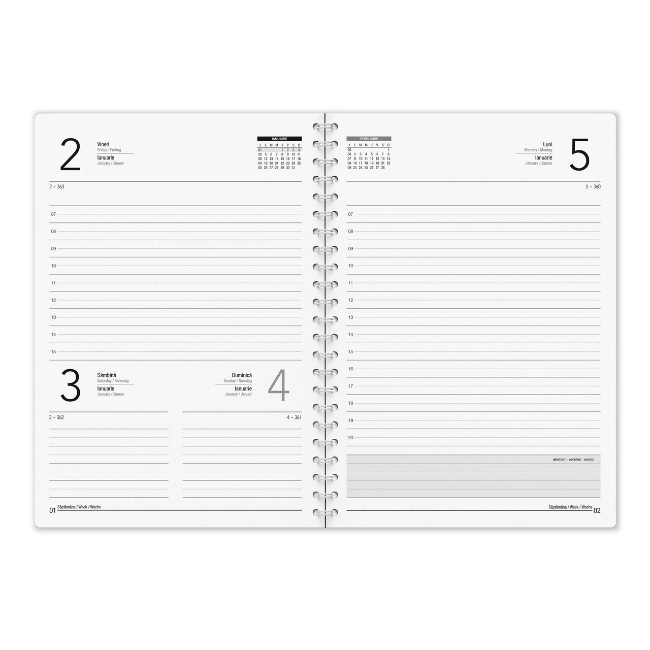 Legarea cu spirala metalică dublă permite deschiderea completă și o utilizare ușoară, fiind soluția ideală pentru gestionarea eficientă a timpului, într-un format profesional și atrăgător.