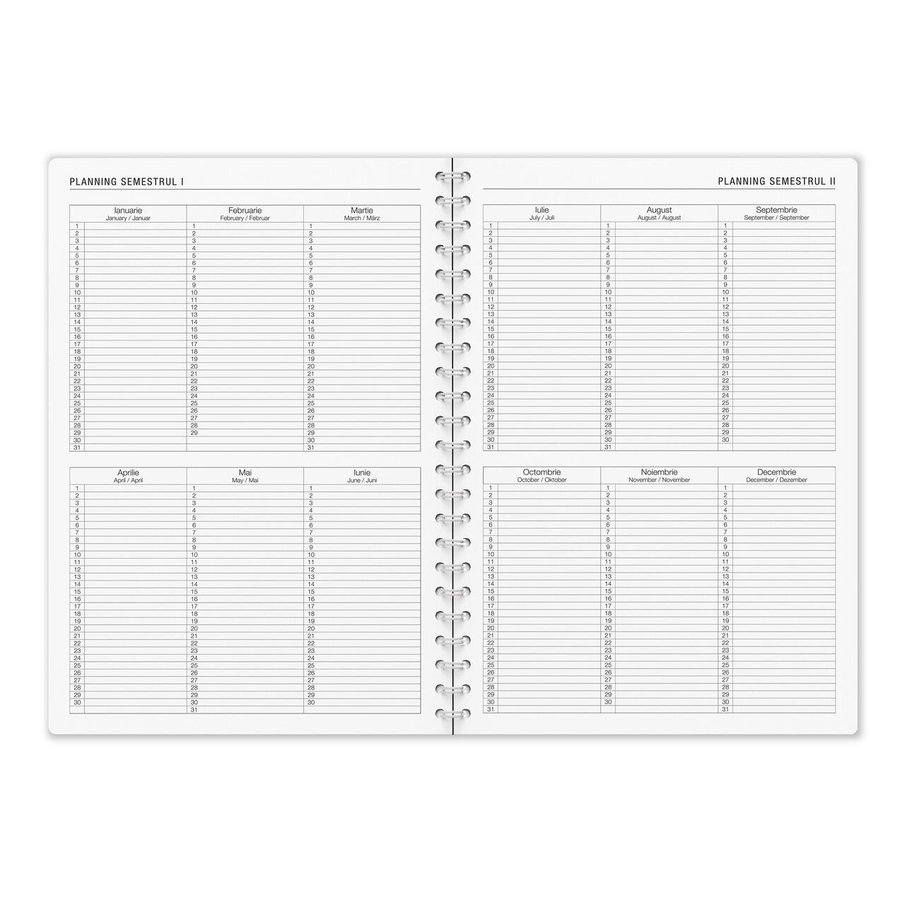 Primele 8 pagini contin informatii utile si planificator saptamanal.