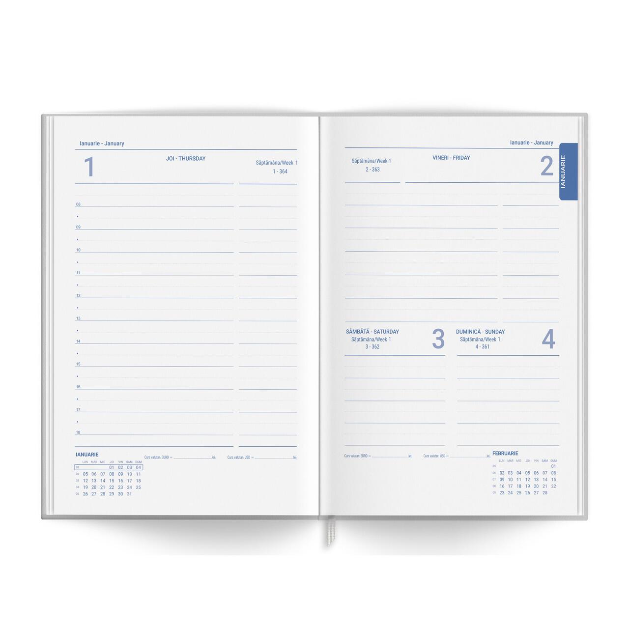 Agenda A5 datata zilnic 2026, coperta model Denim