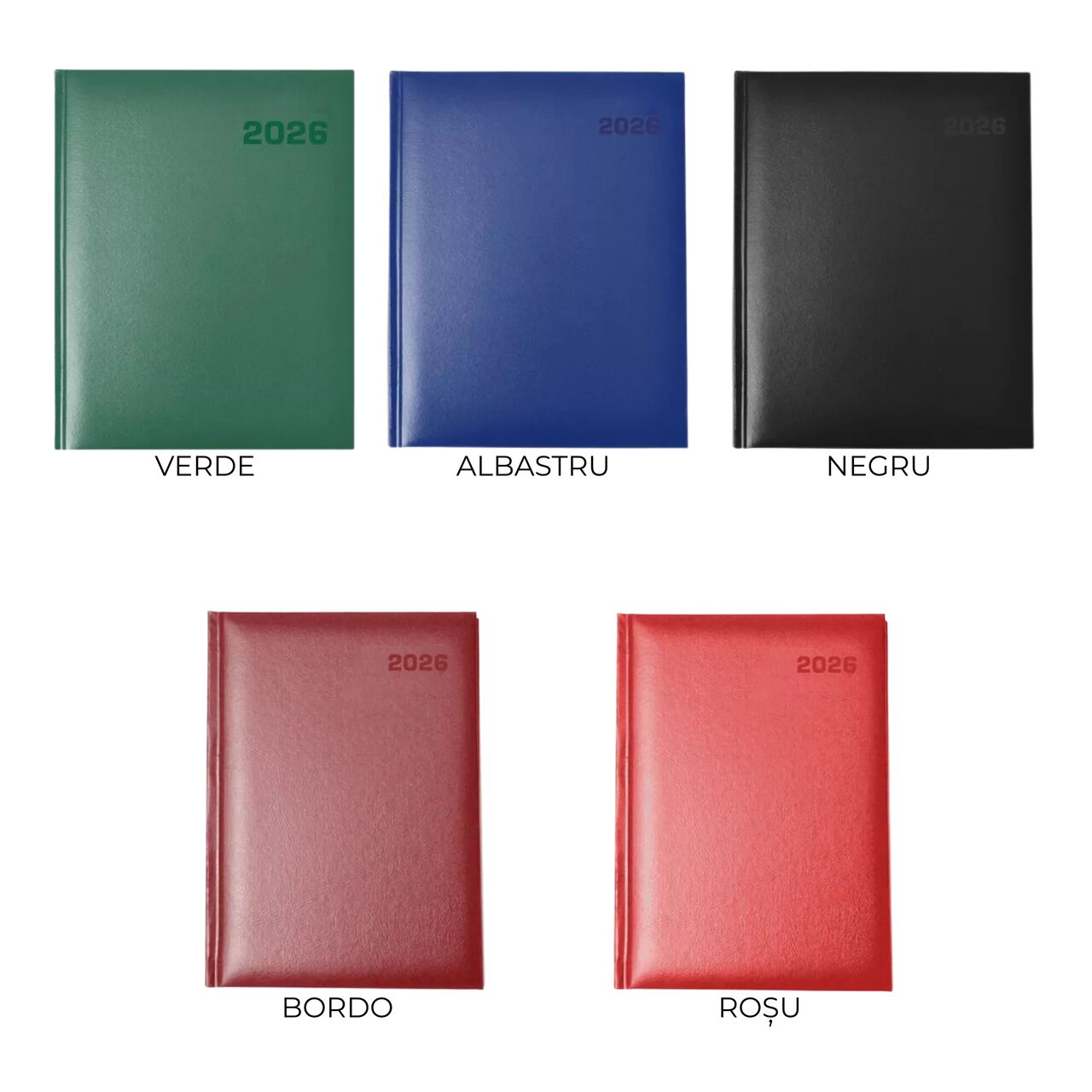In josul paginii este un calendar cu luna in curs. La sfarsit agenda contine un Holiday Planner 2026, Notes, Agenda telefonica si Harta Romaniei.