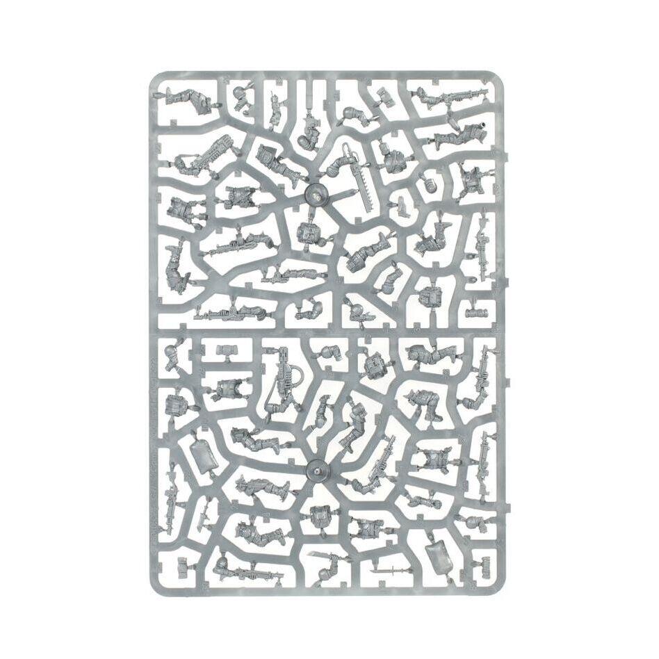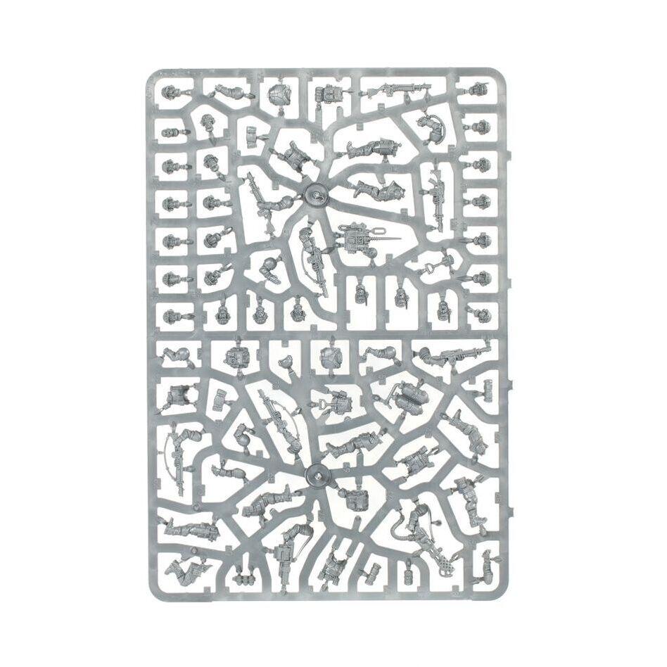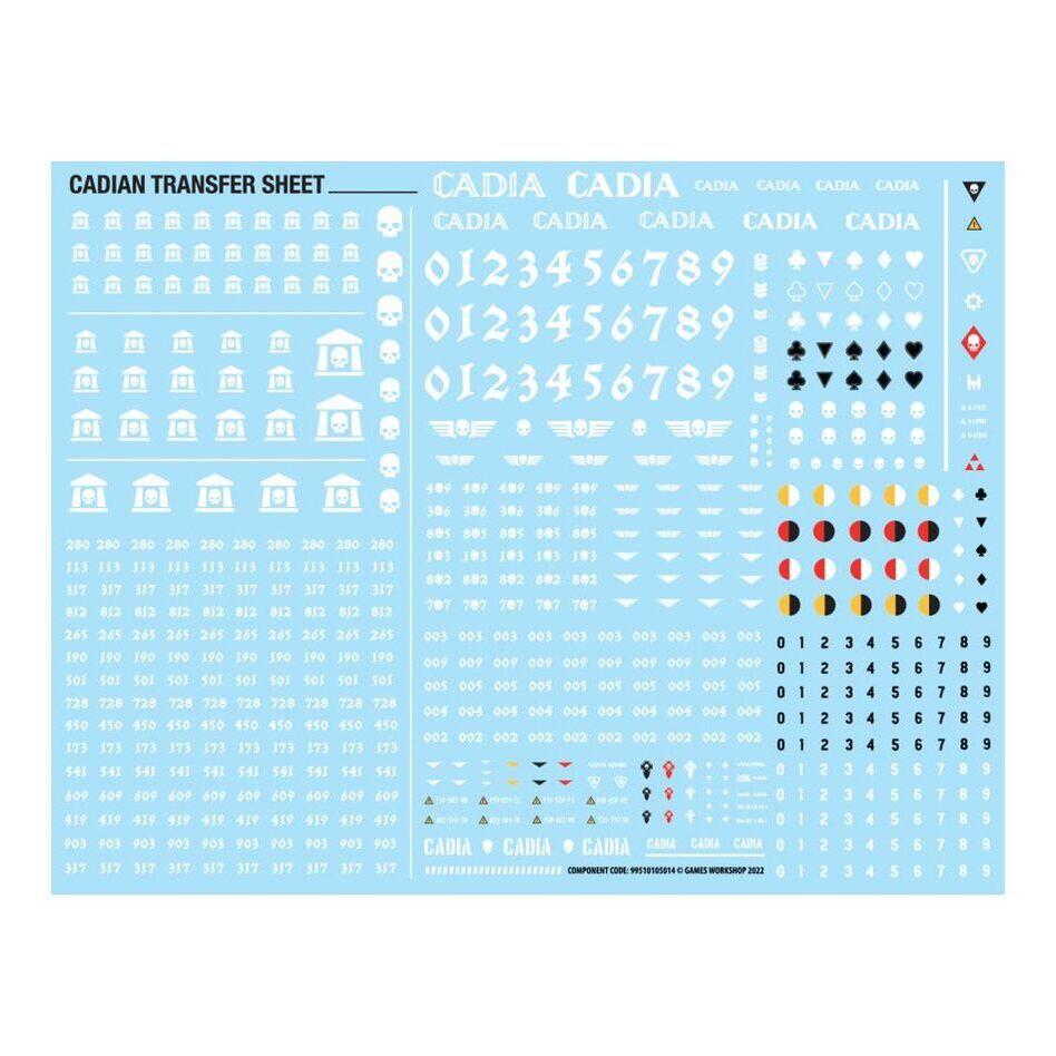 Setul include o varietate de arme speciale pentru echiparea Shock Troopers, peste 20 de capete diferite, saci de nisip, cuțite de luptă, o lopată, o cască de rezervă și o mulțime de paturi de campanie.Setul Astra Militarum: Cadian Shock Troops este format din 131 de componente din plastic și vine cu 10 baze rotunde Citadel de 25mm. De asemenea, este inclusă și o foaie de transfer cu 597 stikere.