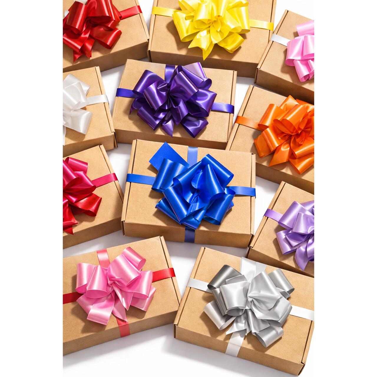 Banda decorativă tip fundiță mare se formează instantaneu prin tragerea firelor interioare, transformându-se dintr-o bandă plată într-o fundiță bogată. Fabricată din material satinat rezistent, aceasta este ideală pentru decorarea rapidă a cutiilor de cadou. Setul oferă o diversitate cromatică surpriză, asigurând variante potrivite pentru orice eveniment. Structura benzii permite fixarea sigură pe ambalaj și menținerea formei estetice.