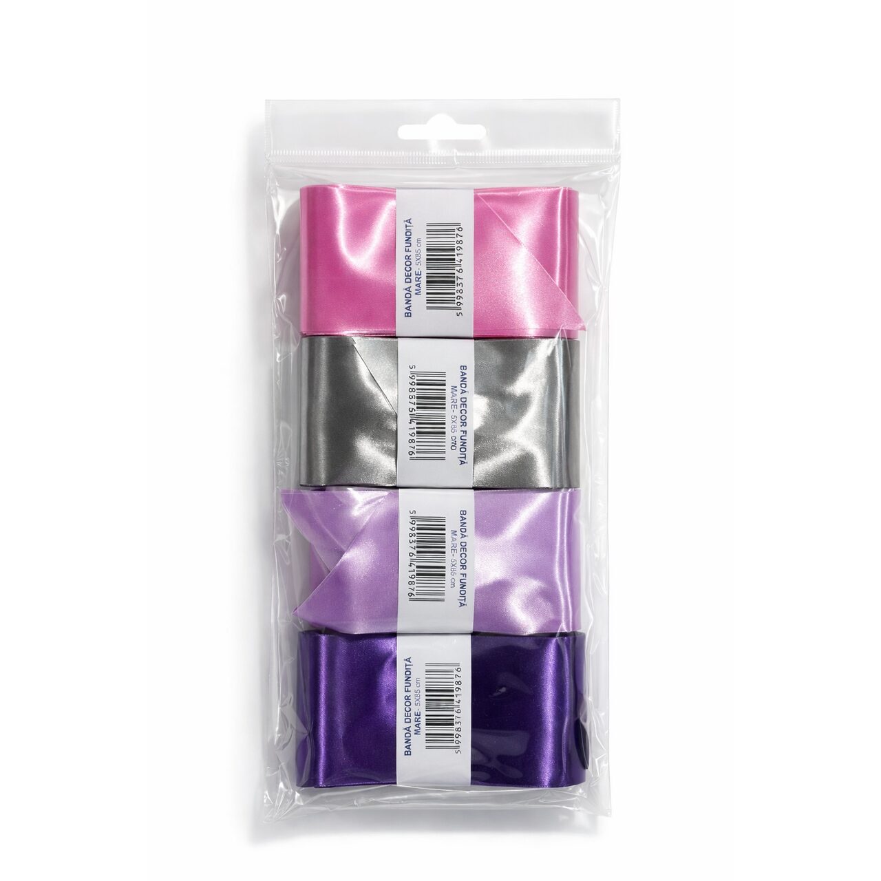 Comandă un set de 3 benzi decorative și primești încă una gratuit. Pachetul conține în total 4 benzi tip fundiță medie, livrate într-un mix de culori aleatorii. Dimensiune: 5x85 cm.
