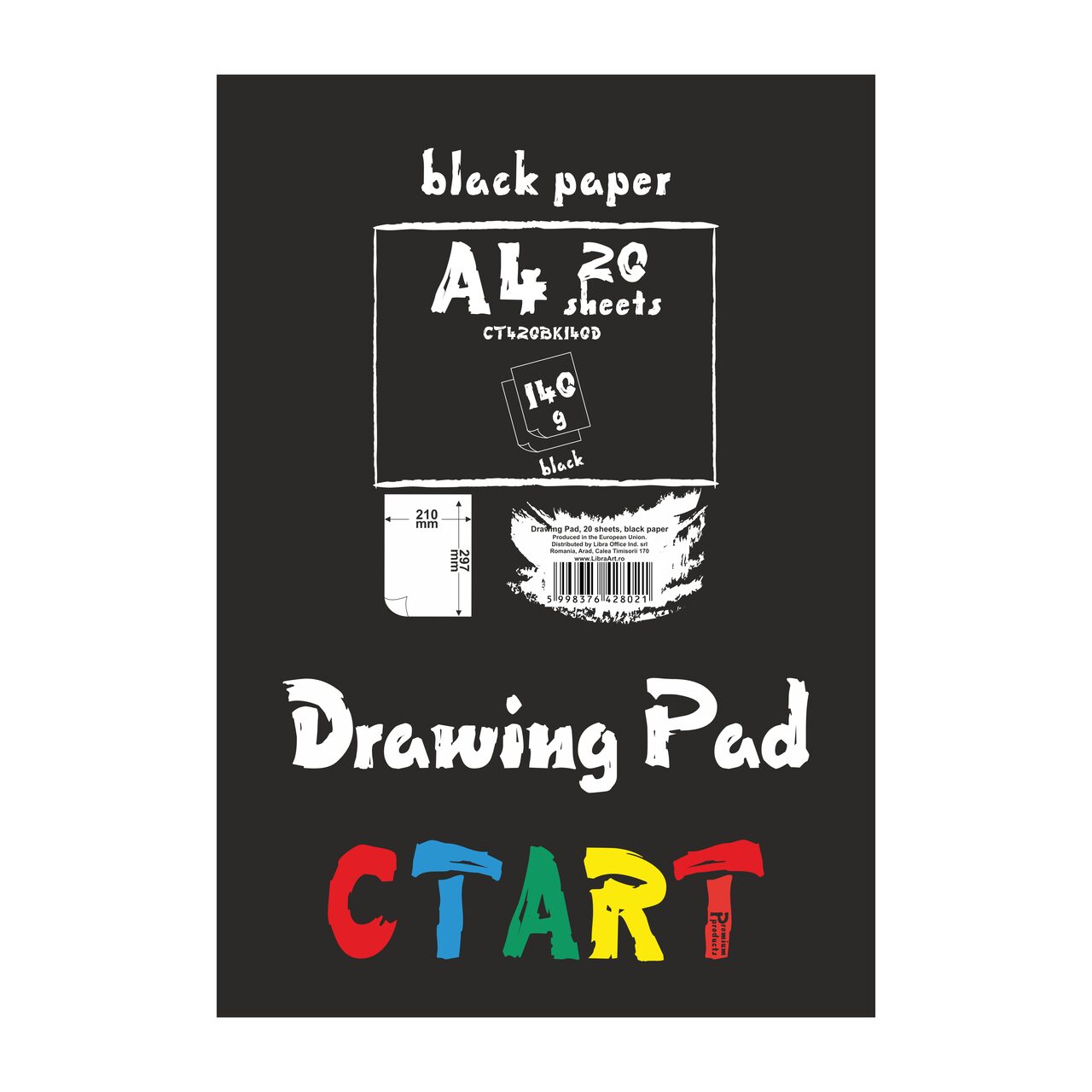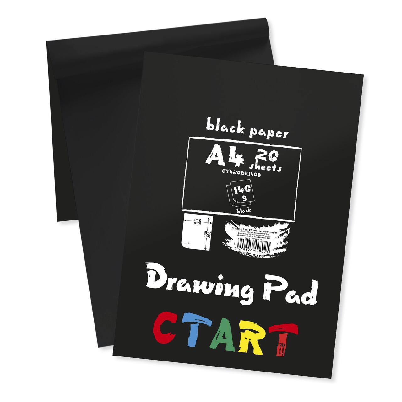 Bloc desen format A4 (210x297 mm), 20 coli carton negru de 140g. Recomandat pentru tehnici mixte: marker, creion, carbune, grafit, acril, etc.