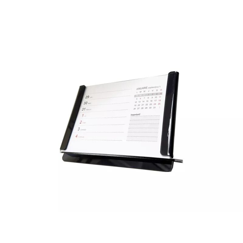 Organizeaza-ti saptamanile eficient cu acest calendar de birou saptamanal, perfect pentru planificarea rapida si clara a activitatilor. Are 53 coli (una pentru fiecare saptamana), format landscape (142 x 212 mm), tiparite pe hartie de 150 g/mp. Suportul din acril transparent (3 mm) ii ofera stabilitate si un aspect profesional.
