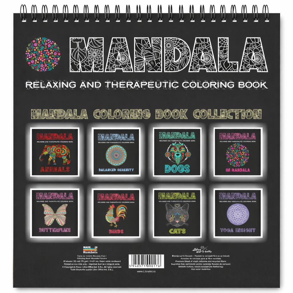 Carte de colorat 31X31 Mandala - Flowers - 25 file 170g spirala