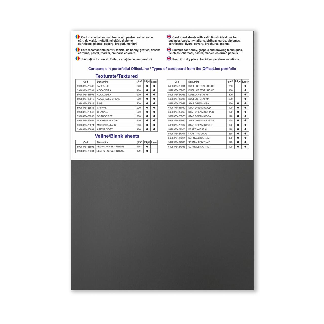 Carton Popset, Extra Black, 170g/m2, negru, neted, FSC, Celuloza ECF FSC fara lemn, topat, 25 coli