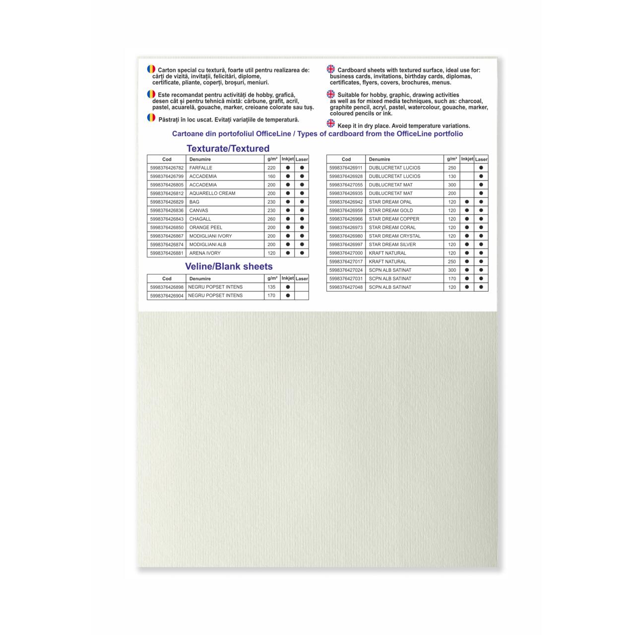 Transformă orice imprimare sau lucrare manuală într-o operă de artă. Cartonul Aquarello Crem nu este doar un suport de hârtie, ci o experiență vizuală și tactilă deosebită, datorită texturii sale unice care imită fidel trama unei pânze fine de pictură.