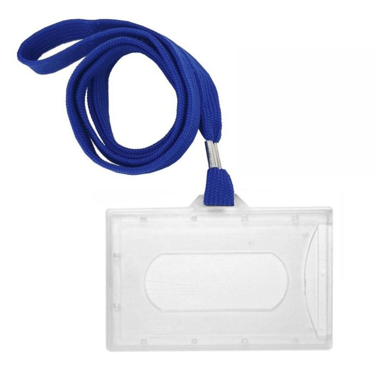 Ecuson cu snur albastru, orizontal, realizat din plastic transparent, cu dimensiune de 83 mm x 50 mm