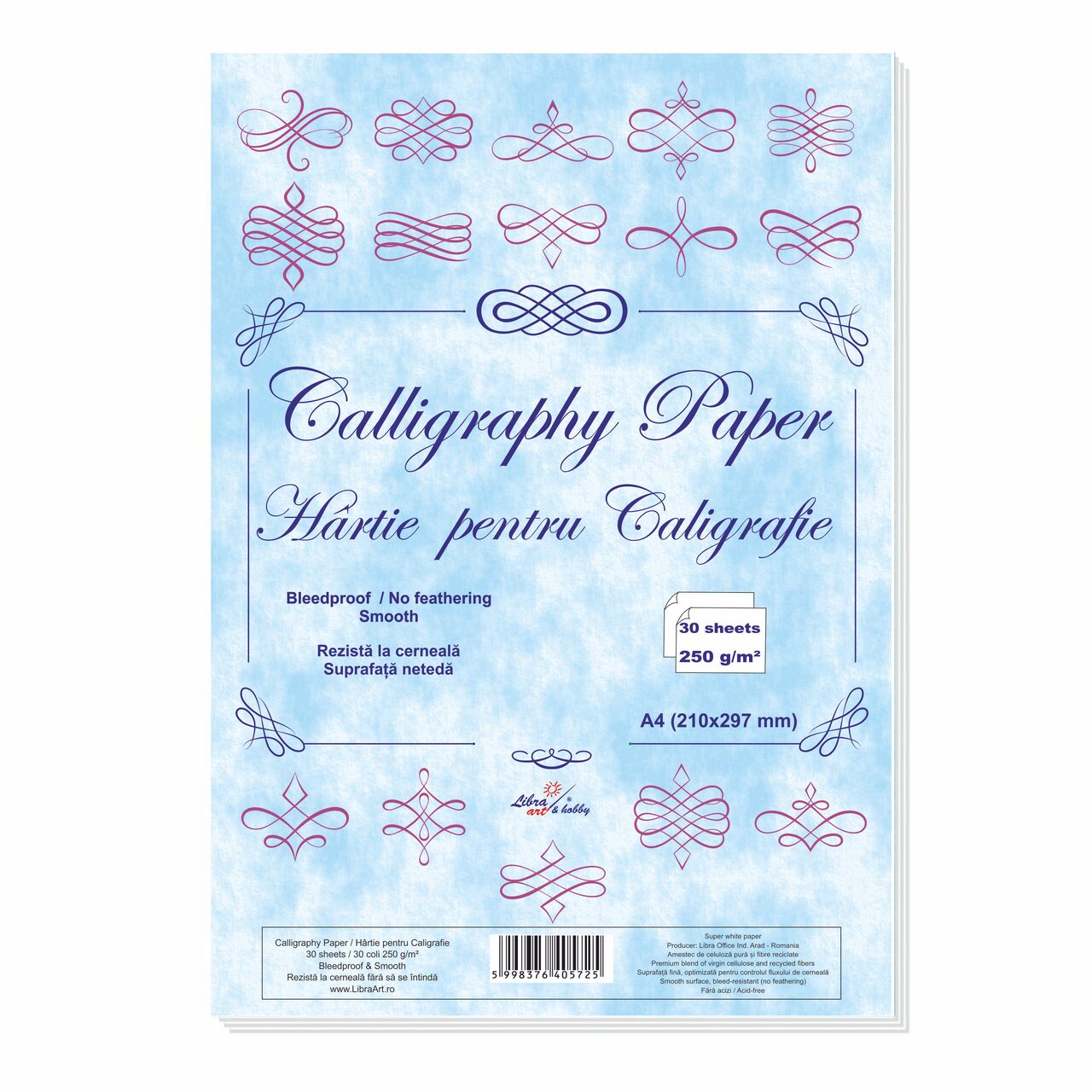 Tehnologie Avansată: Hârtia este tratată pentru a fi bleedproof și a preveni efectul de feathering, asigurând margini perfecte literelor tale, chiar și atunci când folosești cerneluri fluide.