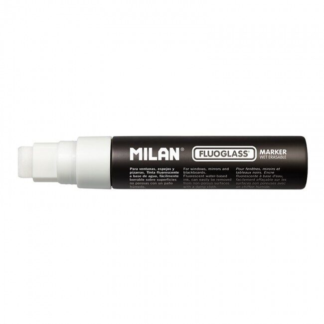 Marker Fluoglass Jumbo Milan alb pentru suprafete netede precum sticla, oglinzi, table magnetice, table negre, panouri informative, meniuri etc.