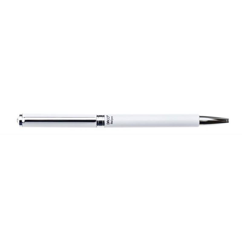Pix corp metalic alb Daco cu cristal decorativ in capat, mina Parker. 15 bucati/cutie.