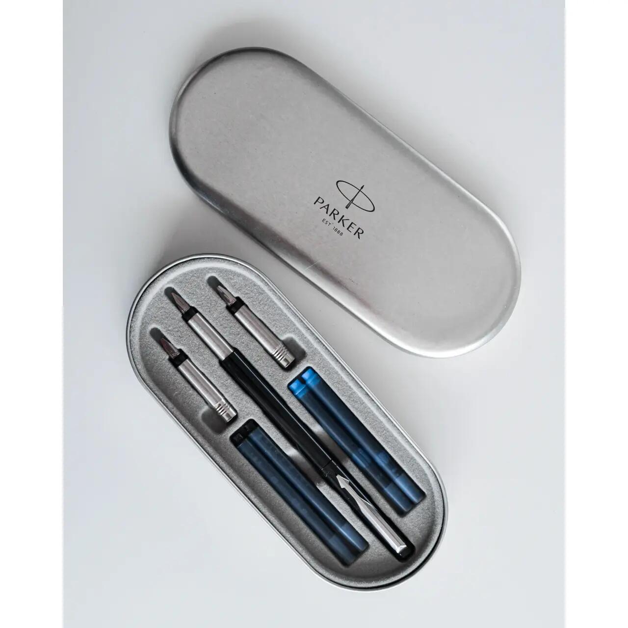 ✔ Accesorii din oțel inoxidabil placate cu crom, pentru un plus de rafinament și rezistență✔ Clip din oțel inoxidabil placat cu crom, oferind un aspect clasic și elegant✔ Capac din ABS negru, durabil și ușor, cu mecanism de închidere prin apăsare✔ Corp din ABS negru, solid și ergonomic✔ Grip din oțel inoxidabil placat cu crom, pentru o prindere confortabilă✔ Peniță din oțel inoxidabil placată cu crom, cu pastilă de iridiu în vârf, asigurând o scriere precisă și lină✔ Compatibil atât cu cartușe, cât și cu convertorul proprietar Parker, oferind flexibilitate în utilizarea cernelii